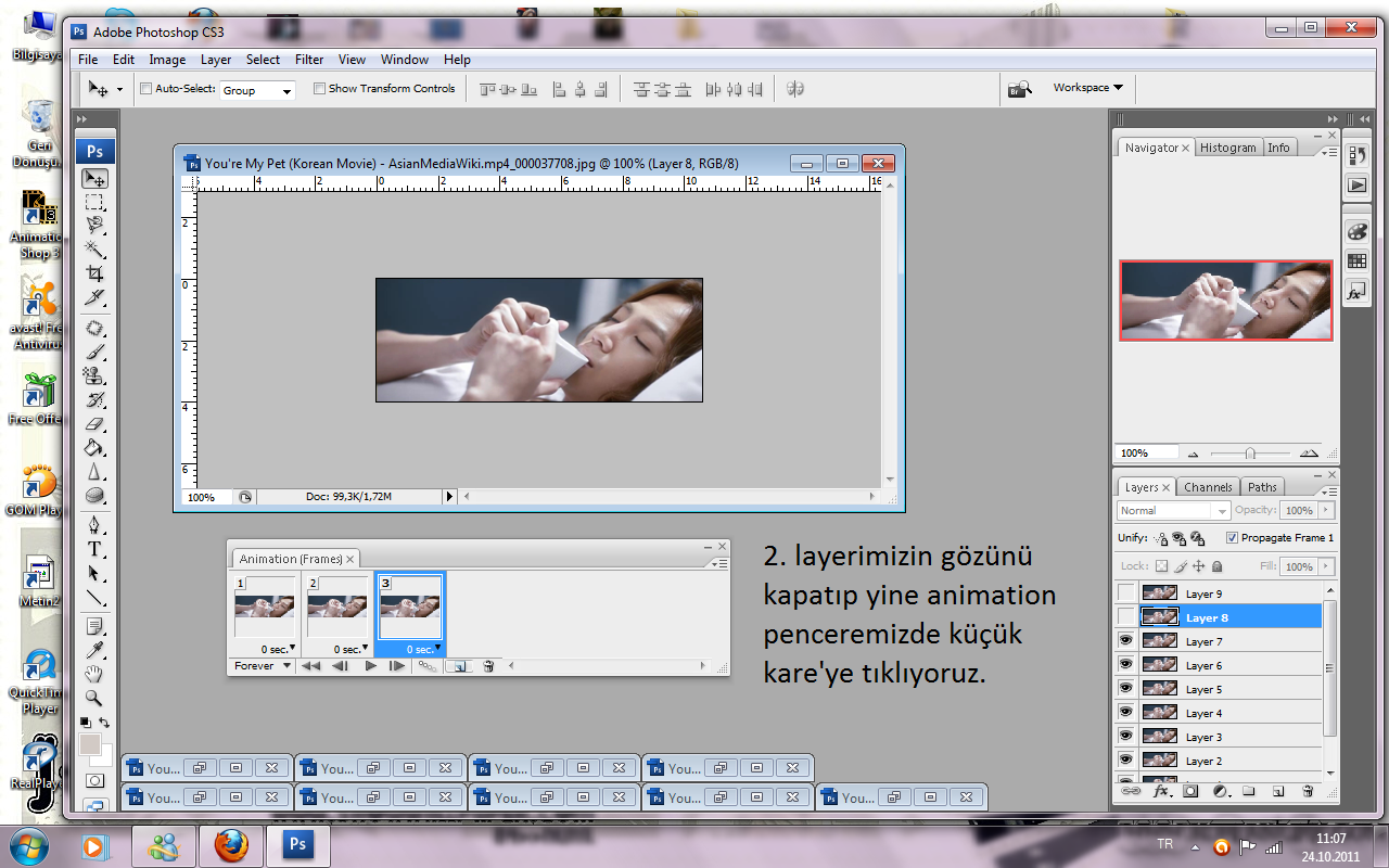 ama bence yazı/psd işini gifi ayarlamaya başlamadan önce halletsin yapacak olanlar. yani 5. adımdan önce. frameler işin içine girdikten sonra en küçük bir hatada her şey kayabilir, bütün frameleri tek tek kontrol edip ayarlamak zorunda kalabilirsiniz. (başıma çok geldi, hiç tavsiye etmem